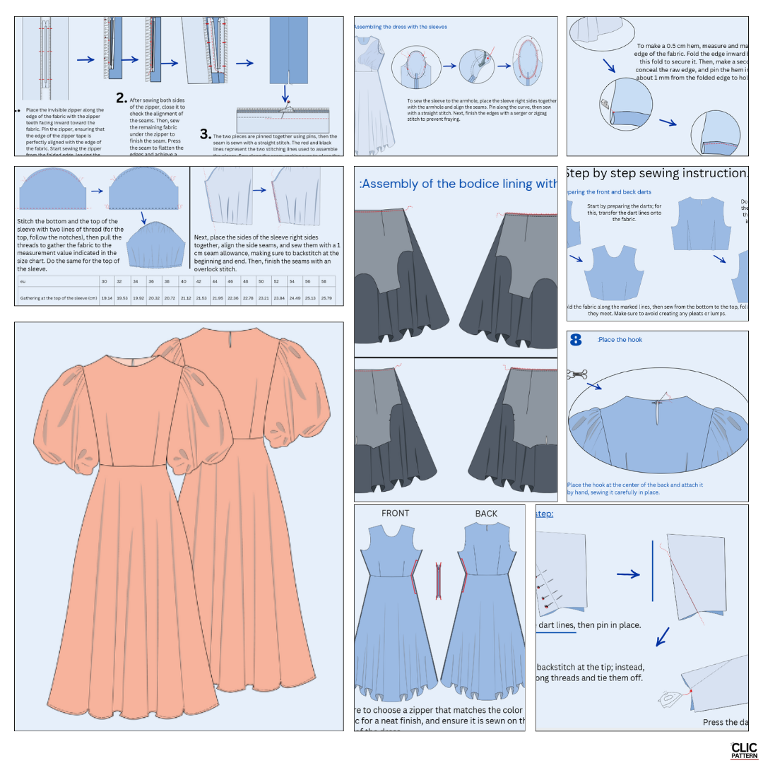 - Zubehör: Verdeckter Reißverschluss 30 cm + kleiner Haken/Öse; passendes Nähgarn.